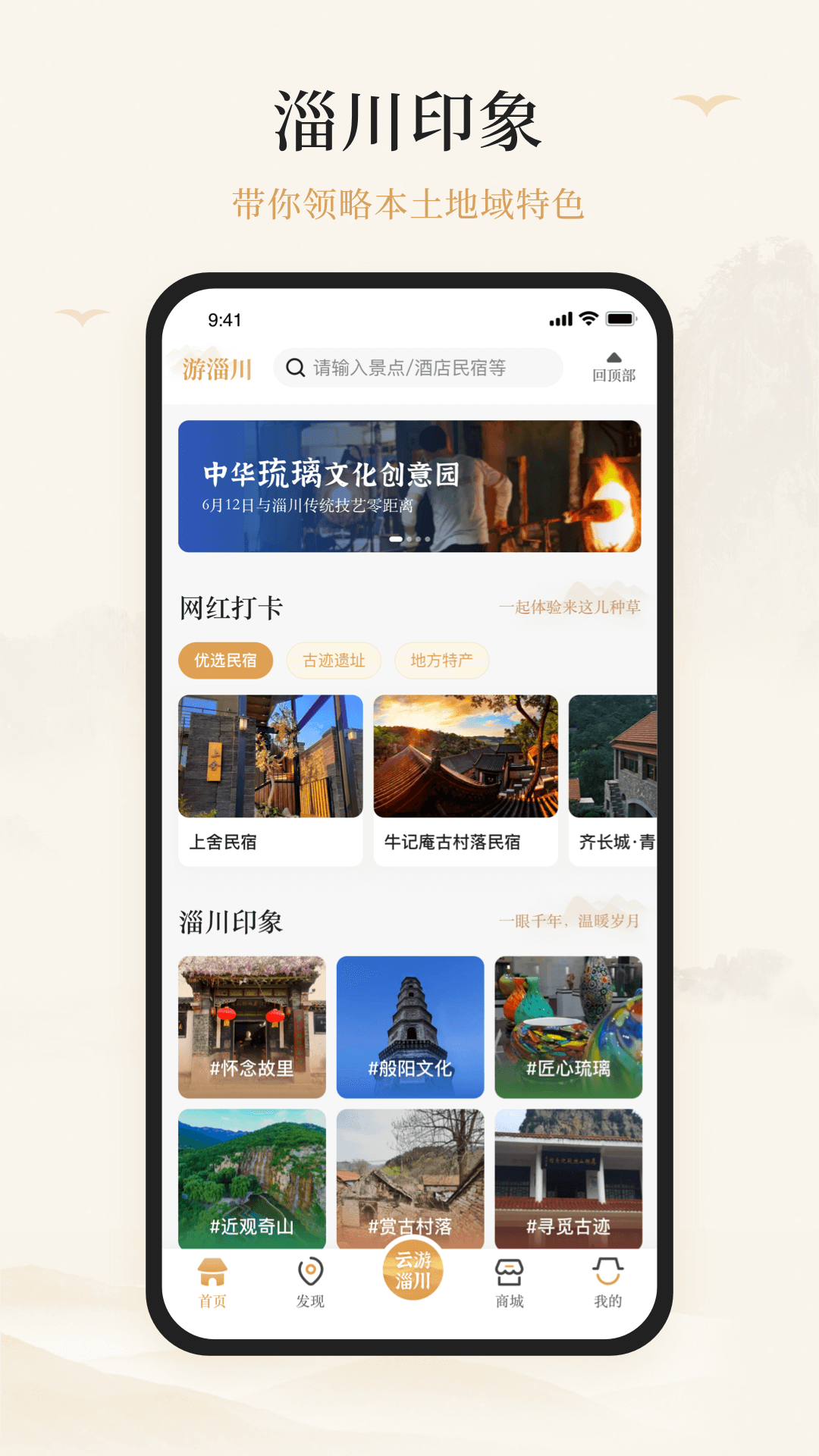“游淄川App”,整合目的地吃、住、行、游、购、娱等各项文化旅游资源以及相关服务,并完成交易与服务闭环。为游客提供真实、可靠的旅游指南和一体化的融合。