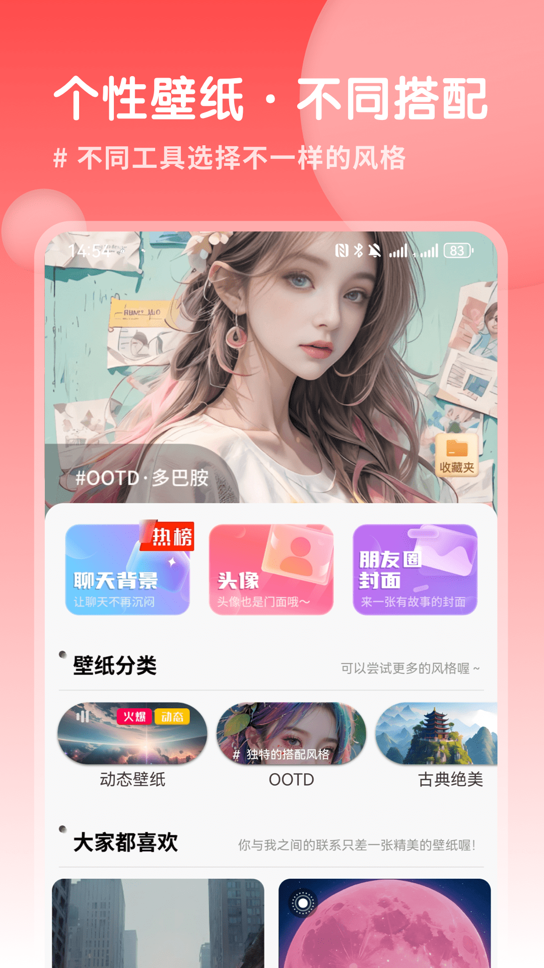 我们还提供各类型的壁纸,像国风古风、动物萌宠、风景、国风山水等等应有尽有。每天都会更新壁纸内容,为您带来一场丰富的视觉盛宴。