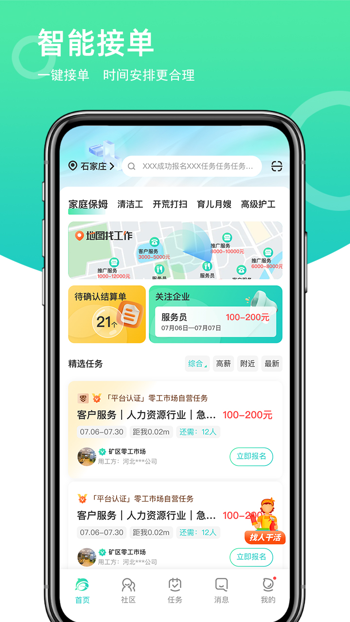 职业智能匹配方面:根据个人的职业技能,优先为其匹配合适的任务。