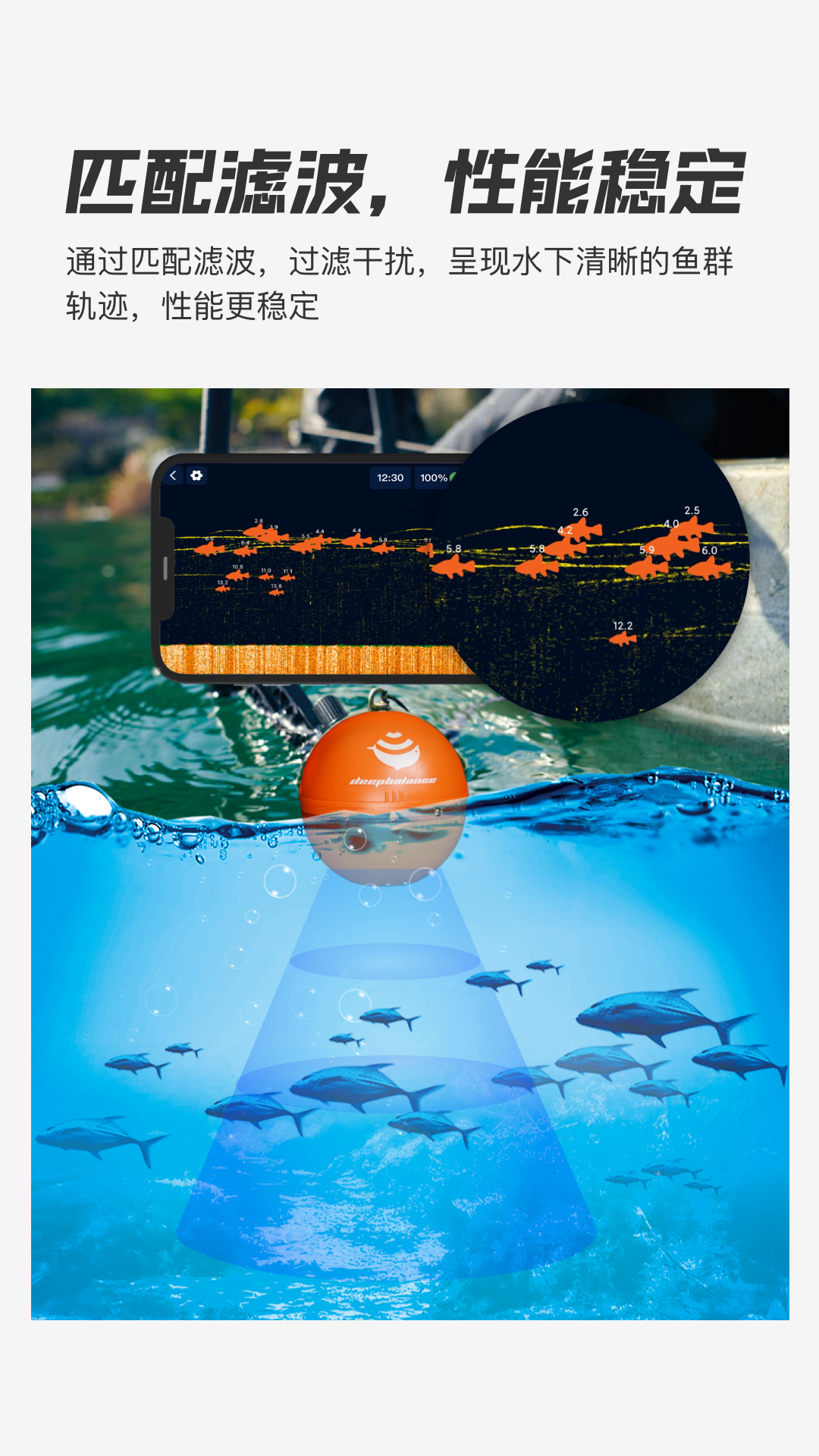 Deep Balance是由博海深衡自主研发的一款钓鱼声呐应用程序。它具备清晰的显示界面,操作简单、功能易懂,能给用户带来优质的使用体验。这款app与钓鱼声纳配合使用时,具有以下功能:其一,可以探测水域的温度、深度以及水下地形;其二,能够探测水下鱼群的大小、所处位置以及运动轨迹等活跃状态;其三,可被装载在打窝船或者无人机上;其四,支持岸钓、冰钓、船钓等功能场景。
