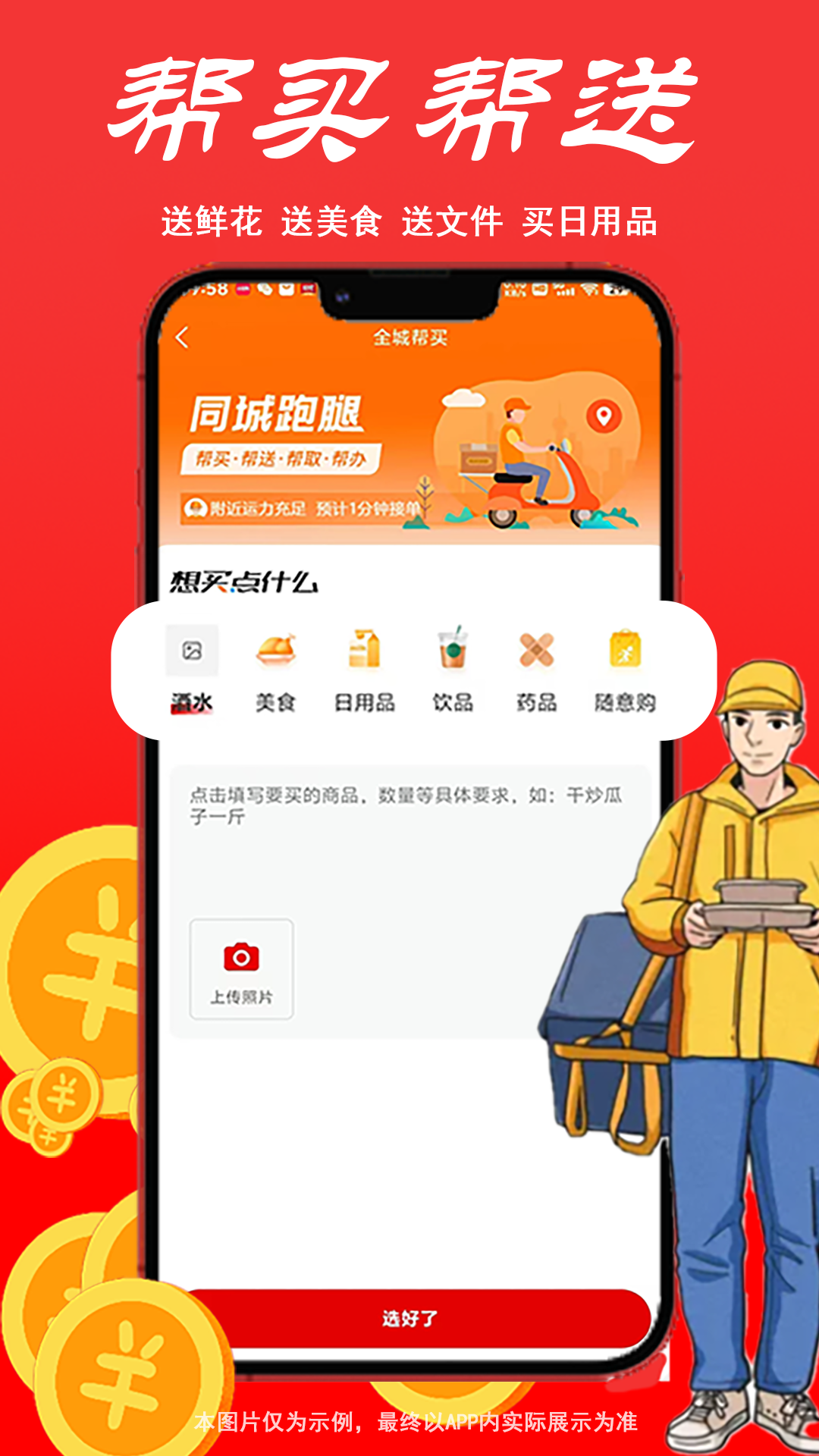 同城跑腿服务,帮取送,帮买,接单员接单工具。您身边的同城急事好帮手。