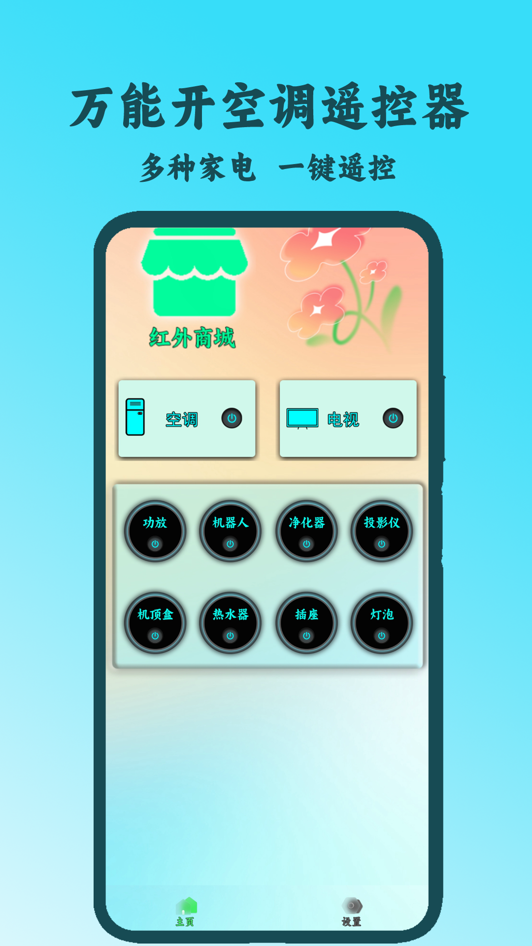 支持空调,电视,机顶盒,网络盒子,DVD,投影仪等多种电器,是真正的手机遥控器.