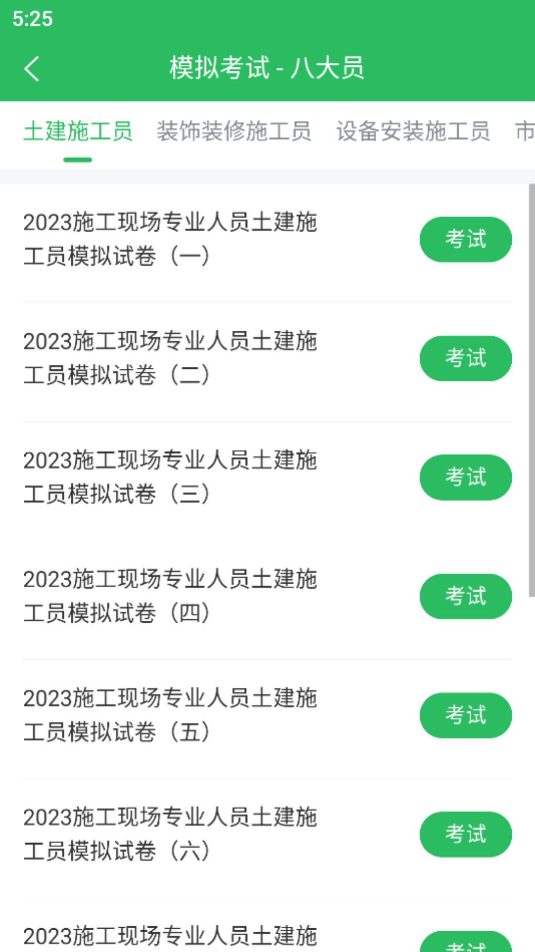 该APP涵盖了八大员全部考试的高质量试题,其中包括历年真题。这里所说的八大员涵盖材料员、施工员、标准员、质量员、安全员、机械员、劳务员等,包含了这些岗位所有知识点相关课程的历年真题集、模拟试题,还有知识点考点的讲义笔记。