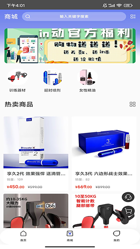 同时,您还可以在平台的购物商城优惠选购优质的情趣用品。购买这些情趣用品不仅可以获赠in动经验值,还能够得到PC肌训练的充值服务。