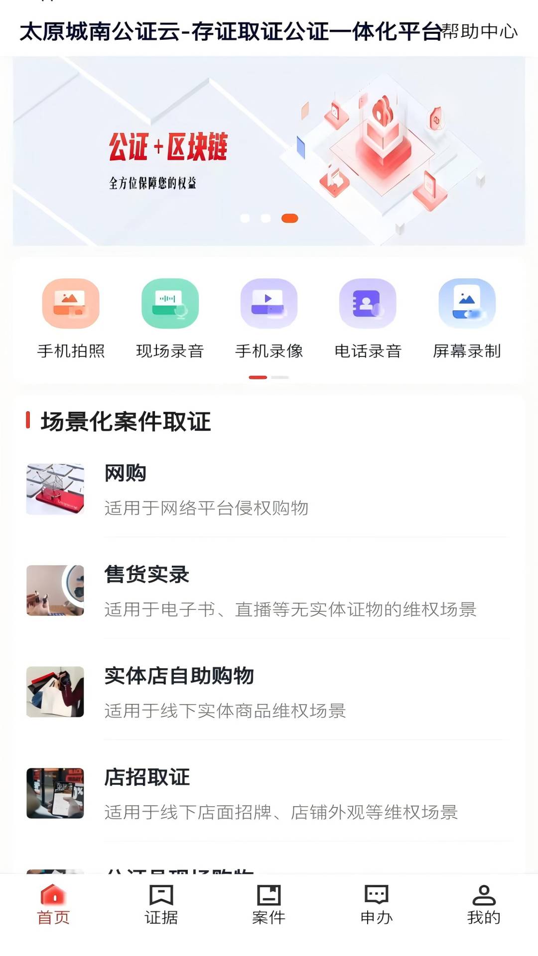 城南公证app具备多种取证工具,像手机拍照、网页截图、通话录音、手机录像、现场录音以及手机录屏等应有尽有。同时,该app推出了极具创新性的“公证 + 区块链”存证模式,能够为用户提供一体化的解决方案,涵盖电子证据的取证、存证以及公证服务等各个方面。
