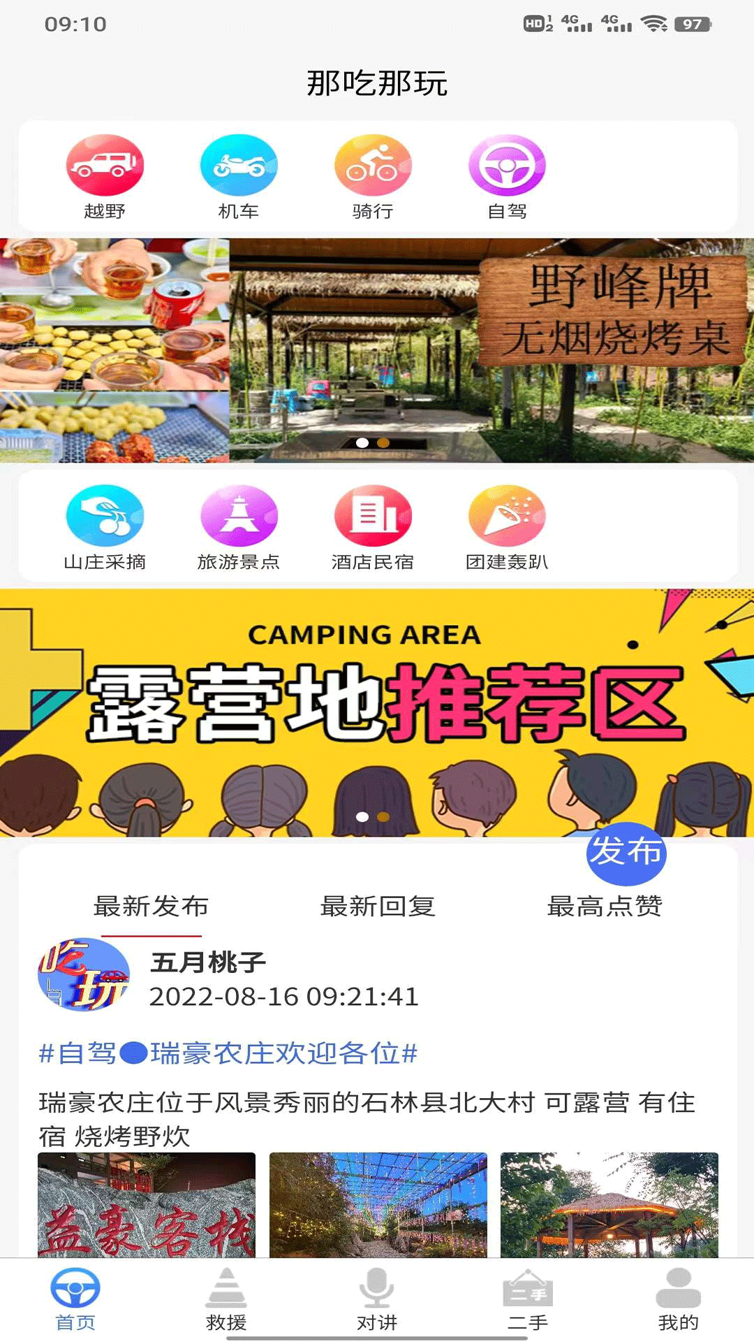 飞喇APP是一款专注于户外自驾、露营、旅游、烧烤以及吃住一体服务的应用软件。在这款APP里,用户能够进行语音实时通话,发布与之相关的图片信息,还可以查看周边的优惠信息。