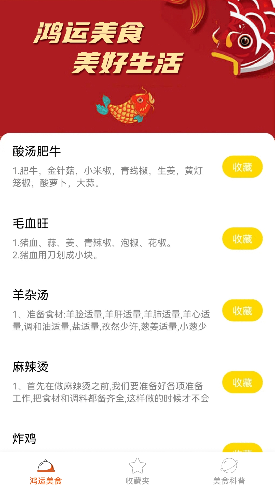 鸿运锦鲤一款让您的生活充满乐趣和好运的烹饪应用。在这里,您将发现一道道寓意鸿运当头的菜谱,让您在享受美味的同时,也能感受到生活的美好。