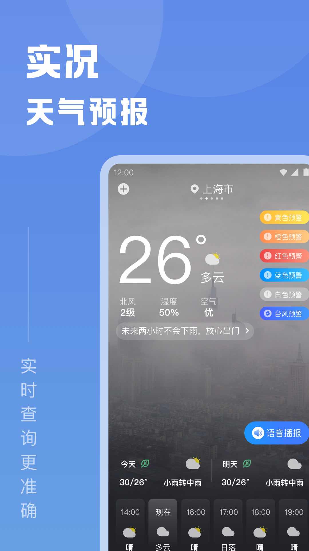 1. 实时天气:为您呈现温度、湿度、风力风向、空气质量以及灾害预警等信息。