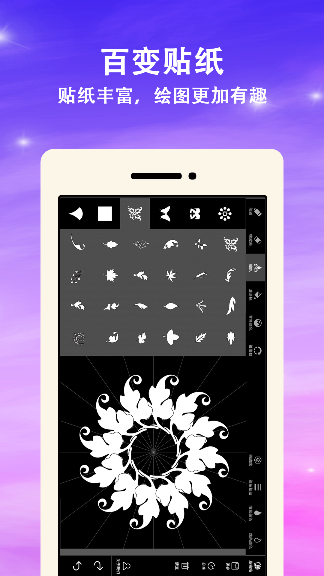 曼达拉是一款专门用来设计制作曼达拉(mandala)图案的软件,曼达拉图案的特点就是中心对称,带你感受对称图案之美。软件中还提供了丰富的笔刷,海量的贴纸给用户使用,让你随时随地想画就画,享受一笔成画的快感。