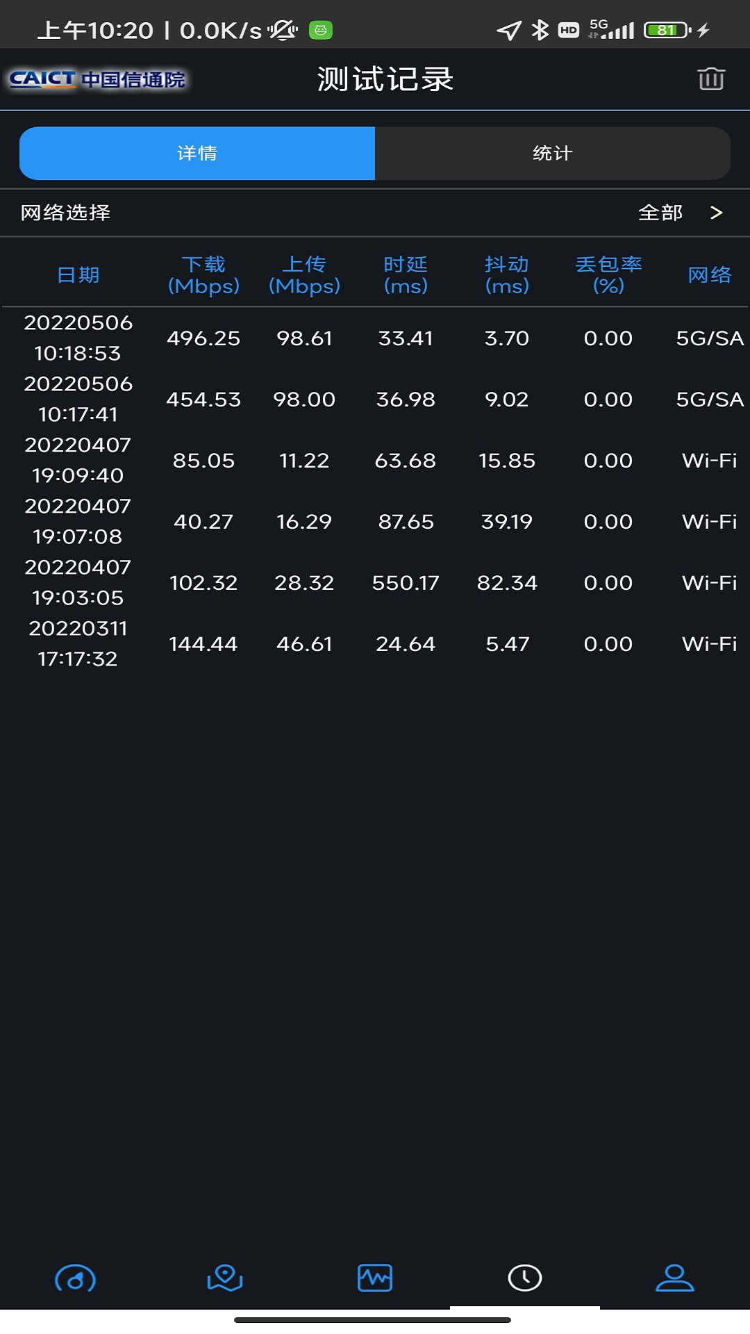 5G云测,是由中国信通院发布的可用于一键智能测试网络时延、上传速率、下载速率的测试工具。针对5G网络识别NSA/SA组网方式,展现当前网络状态,自动统计手机5G时长占比