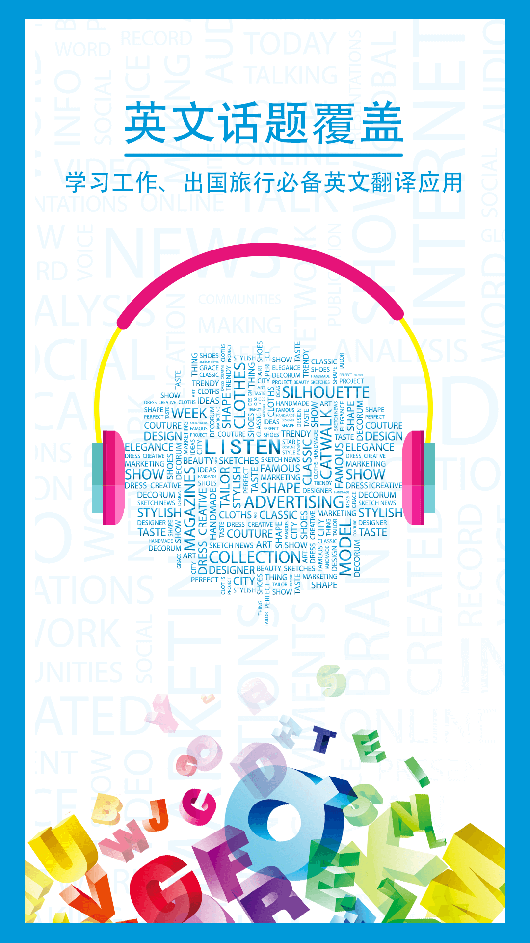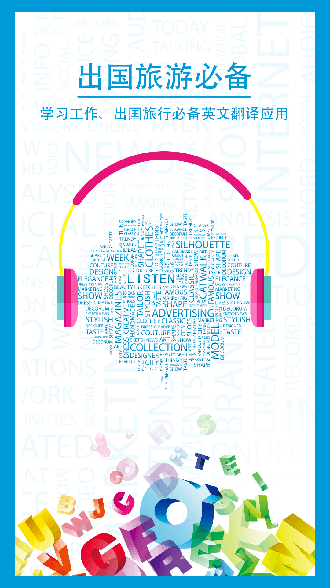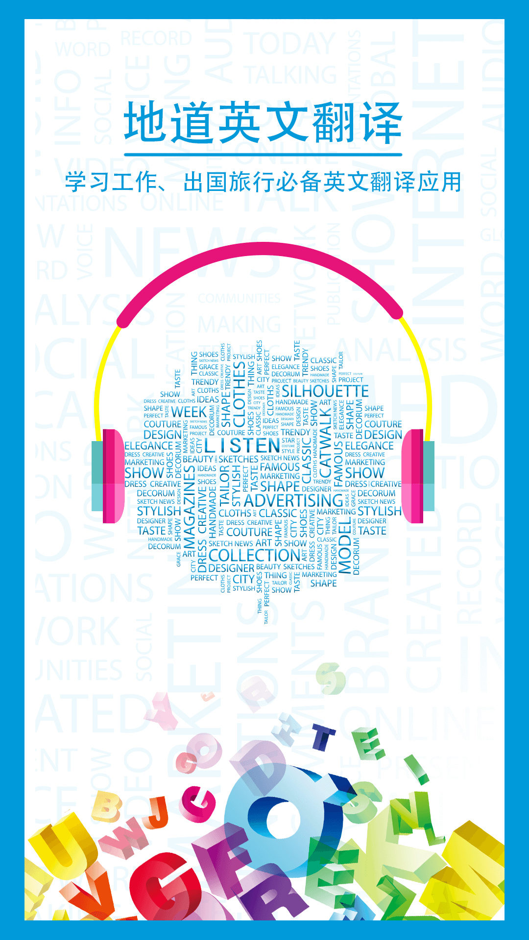这款应用提供便捷的英文翻译服务,还拥有丰富的英语学习资料以及双语资讯。设有阅读、听力、口语、词汇、考试、作文、笑话、故事这八个频道供您学习,无论是地道的美式英语还是英式英语,无论是听力练习、双语阅读、双语故事、双语笑话,还是英语四六级考试题、单词学习、每日一句、音标学习、口语练习等内容,应有尽有。