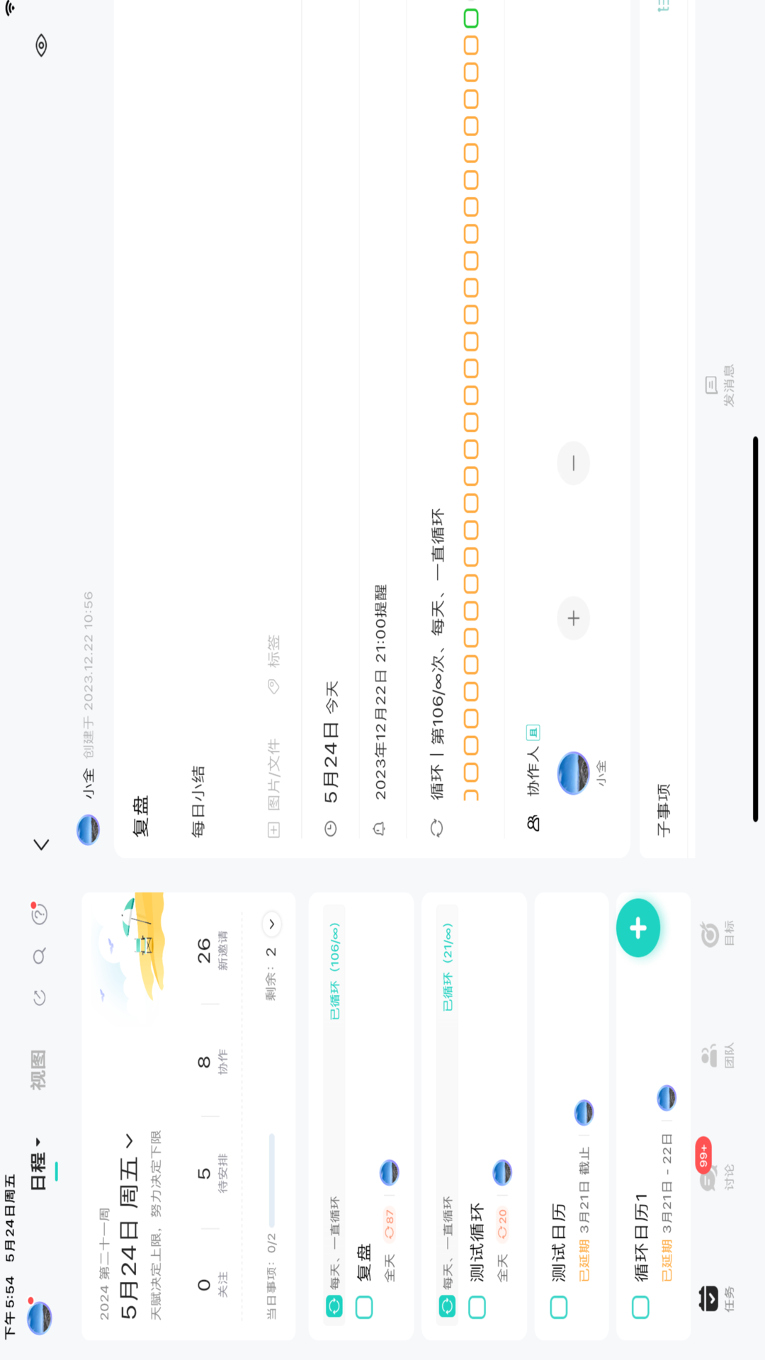 1.3 时间管理:多平台(微信、APP、PC)执行提醒,循环事项、每日早晚报,计划总结两不误