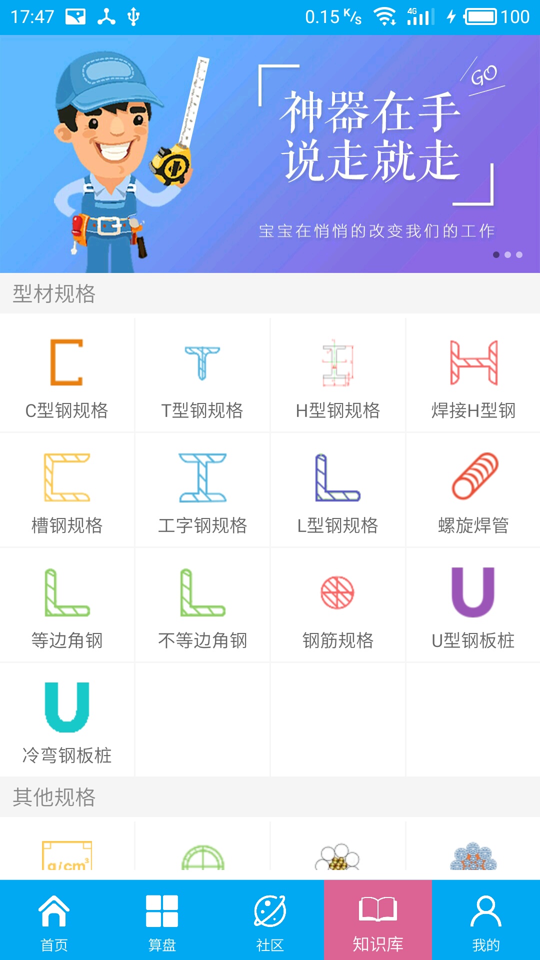 算料宝是一款专为工程技术、机械加工以及钢材销售人员工作打造的手机专用计算器。它提供了近百种计算服务,这些服务涵盖钢材计算、五金计算、单位换算、科学计算、工程计算、智能排料计算、钣金计算、钣金放样等类别。另外,算料宝还收录了各种各样的技术规格数据,便于使用者查阅学习。可以说,算料宝是工程技术人员不可或缺的办公好帮手。