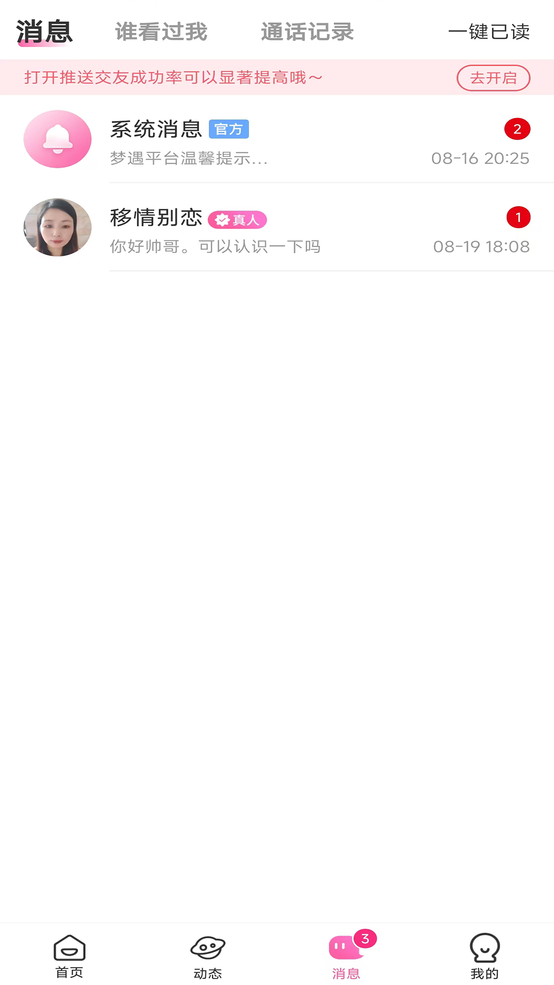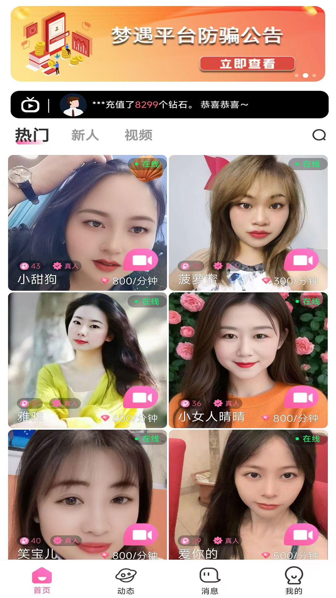 梦遇,这是一个充满温度的交友平台哦。在梦遇之上,你能够借助文字、语音、视频等多种多样的方式,和那个TA展开聊天互动呢。在这里,你有机会寻觅到心仪的另一半,结识知心的朋友,找到红颜或者蓝颜知己!如果不想再被孤单无聊所困扰,那就赶快下载梦遇,去体验那种真实且美好的交流吧!