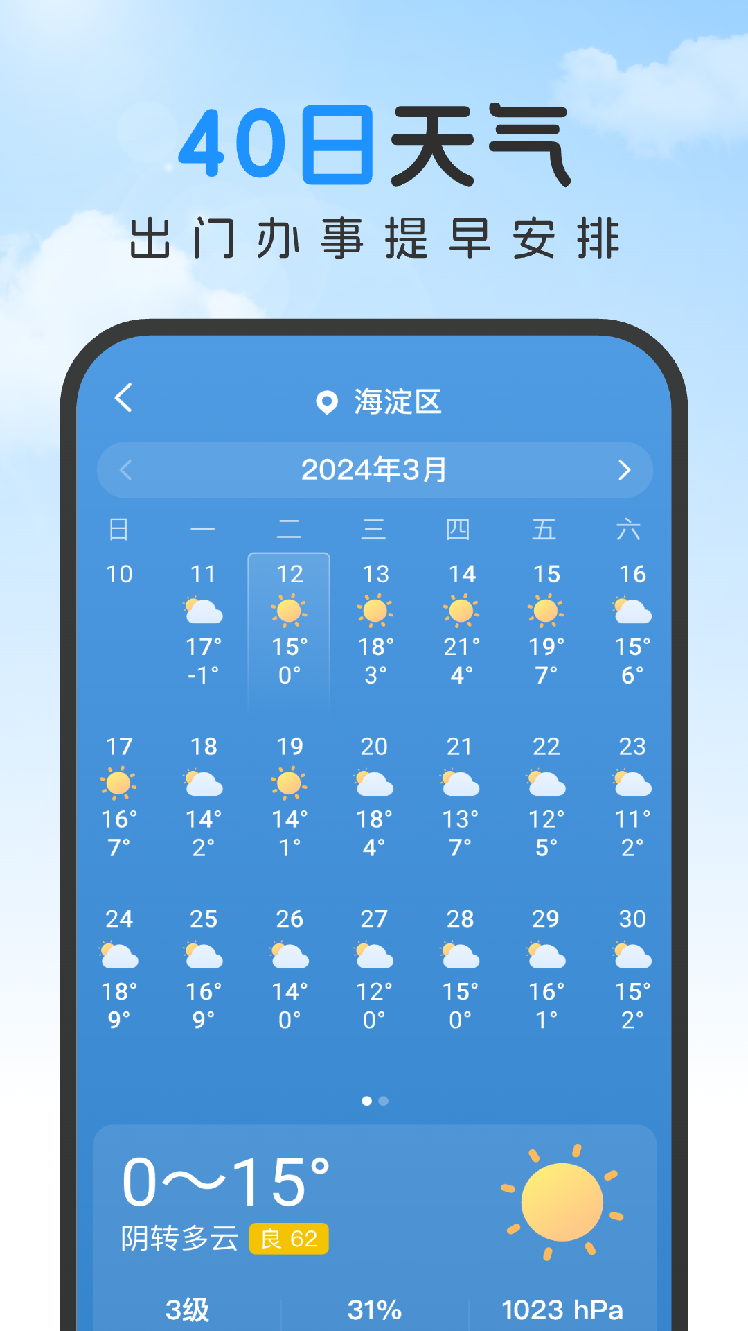 提供分钟级的天气更新,无论是突然的降雨天气还是夜晚的温度骤降,您都能即刻获取通知,为您的生活工作做好万全准备。