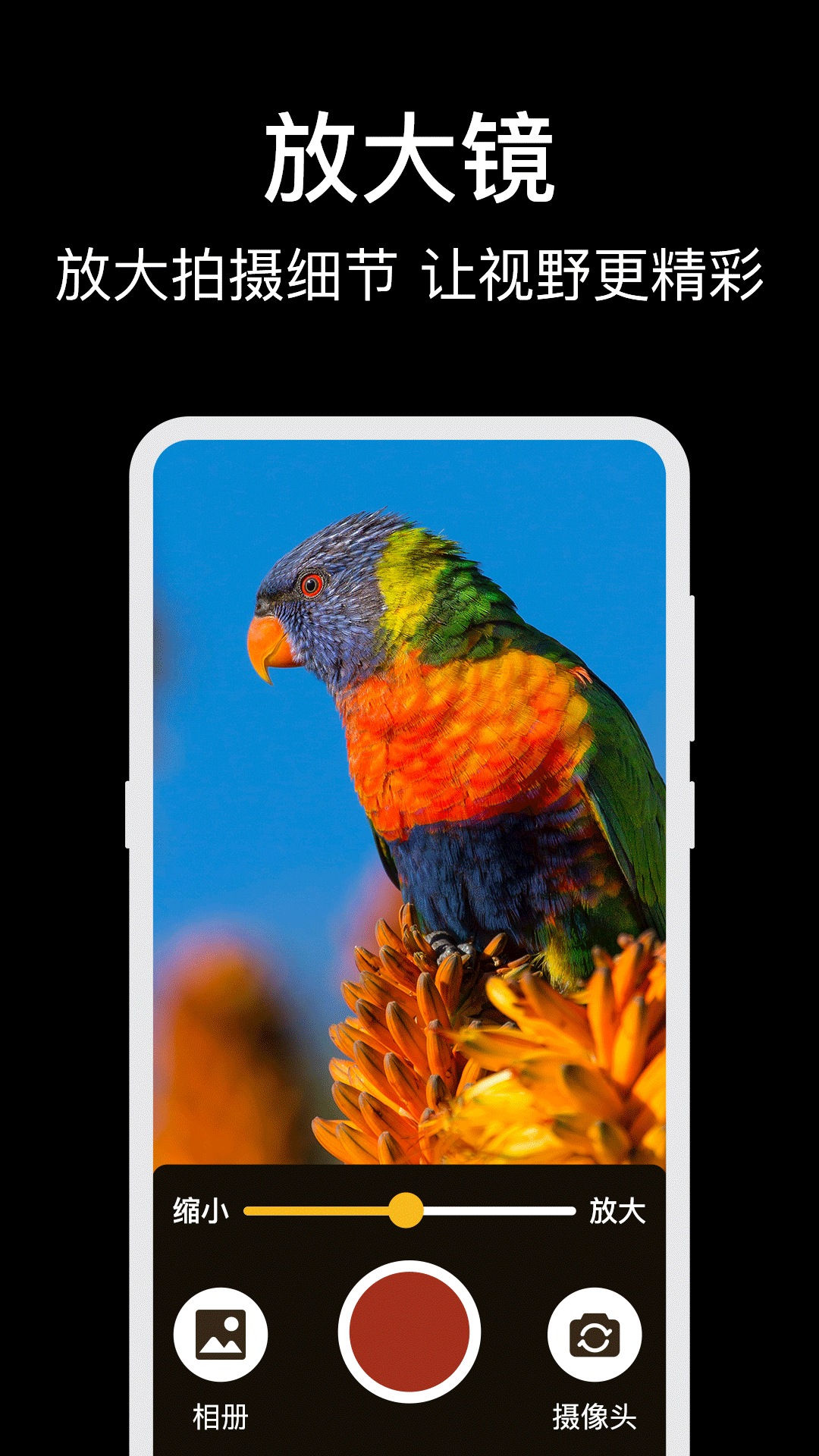 - 能把拍摄的照片保存到图库中,定格一帧或者多帧画面以便查看。