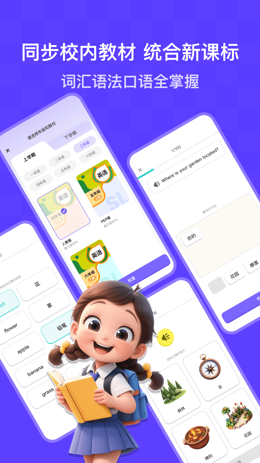 校内同步练功能上新! 更新人教版一年级、二年级、三年级、四年级、五年级、六年级内容。 同步学校教材,统合新课标,词汇语法口语全掌握。 告别哑巴英语,AI外教1V1陪练课本场景。