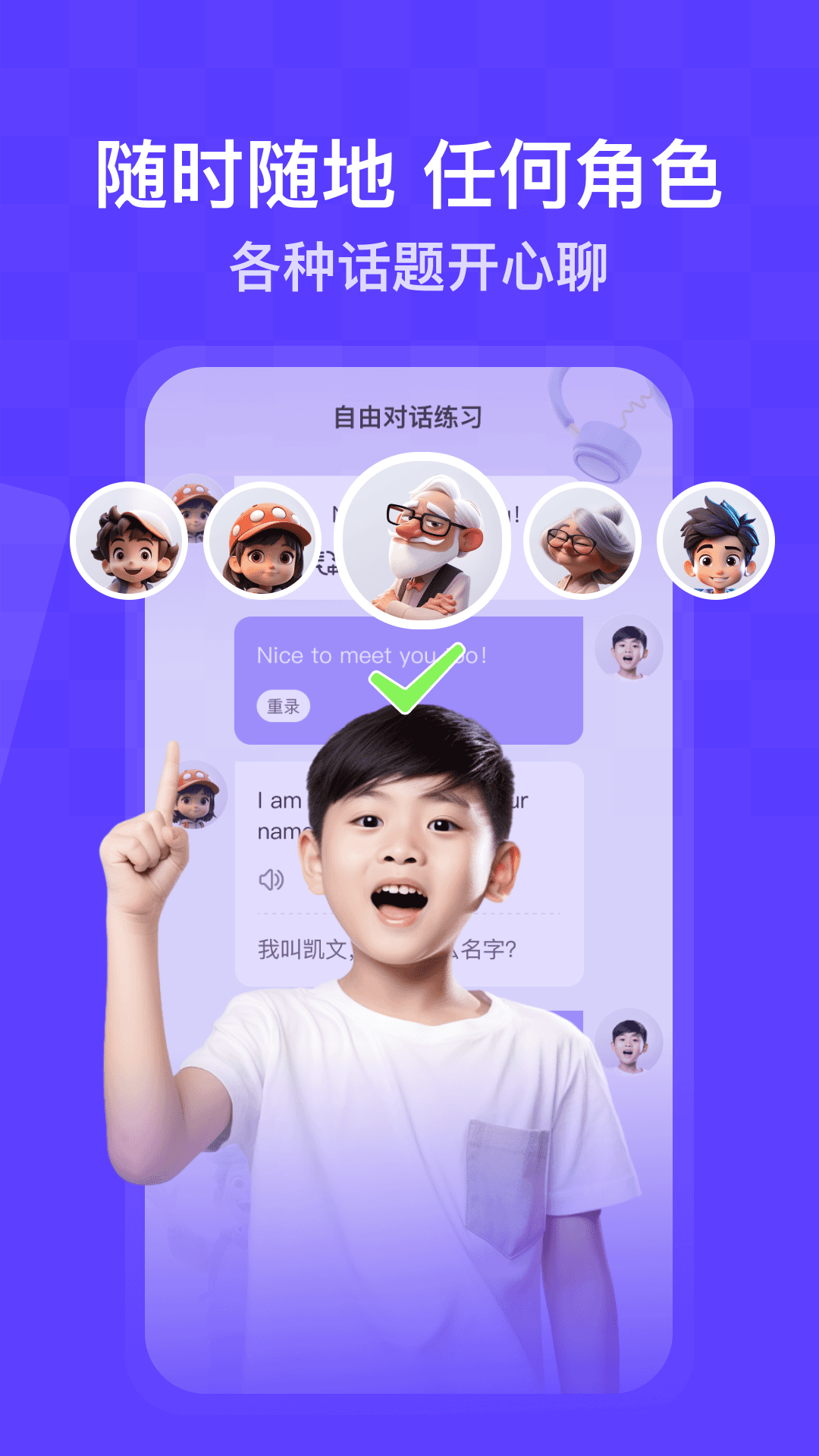 可以自主确定聊天主题,不管何时何地,无论是任何角色还是各种各样的话题,都能开心畅聊。