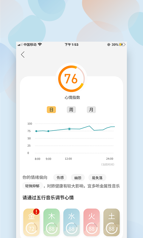 麦节app结合麦节音乐情绪管理手环,实时数据监测、测算生理数据和情绪状态,匹配治愈音乐为用户释放负面情绪,放松心情,具有调节情绪功能。