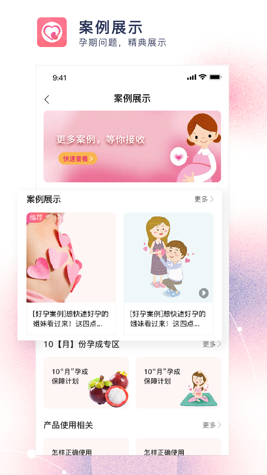 此外,软件提供孕期爱心提醒,包含孕期要点提醒事项以及孕期注意事项的说明,让用户获取孕期小知识。在案例展示界面,还会呈现更多孕期的注意事项。