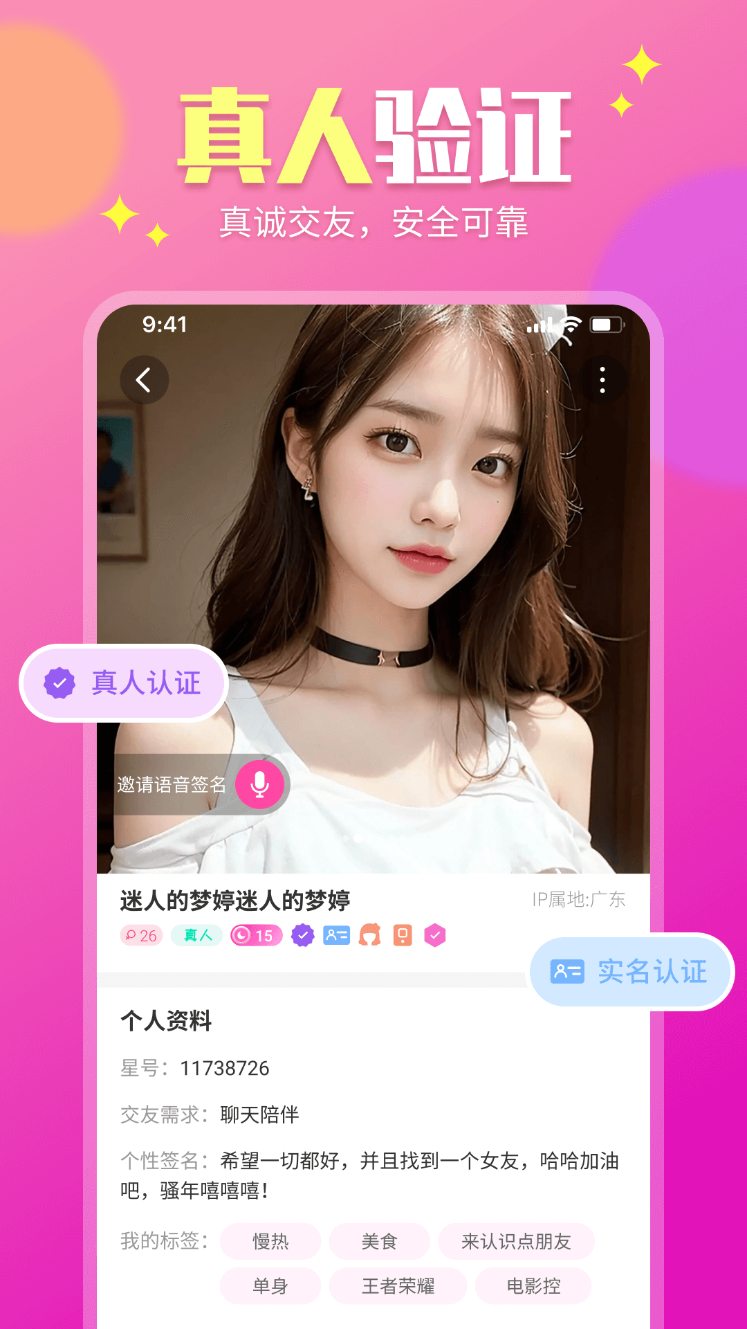 这款软件上的用户们都是身份认证过的,绝对真实可靠,还会根据用户的条件为你筛选合适的朋友,在没有更进一步的聊天之前,平台会保护用户的隐私,快来这里寻找让你心动的人吧。
