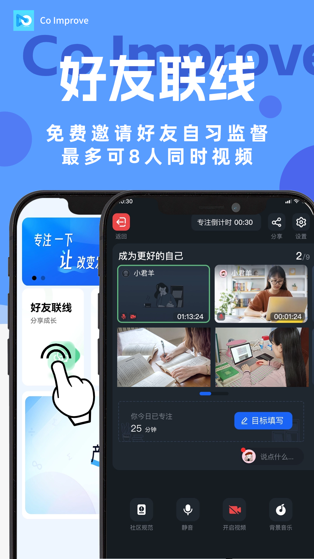 欢迎来到Co - Improve,这可是您线上自习室的不二之选!不管您是已经是学霸,还是正朝着学霸之路努力前行的学子,这里都将是您获取学习动力、养成自律习惯的绝佳去处。