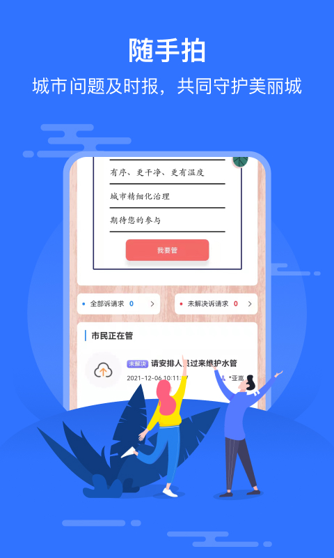 3. 具备“随手拍”功能,鼓励全民参与县域治理和城市治理。市民可以通过随手拍的方式,及时反馈身边的城市治理问题,如环境卫生、公共设施损坏等,增强公众对城市治理的参与感和责任感。