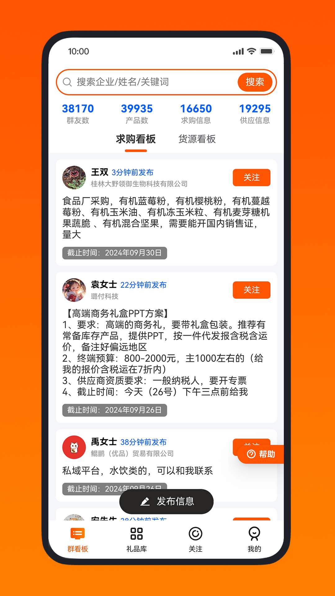 “猫嗅群看板”,它能够将礼圈中的多个社群相互打通,从而为采购方和供应商在多个社群之间搭建跨群链接合作的桥梁。其操作十分简便,若要寻找产品,只需“发布求购”;若要推广产品,仅需“发布供应”即可。