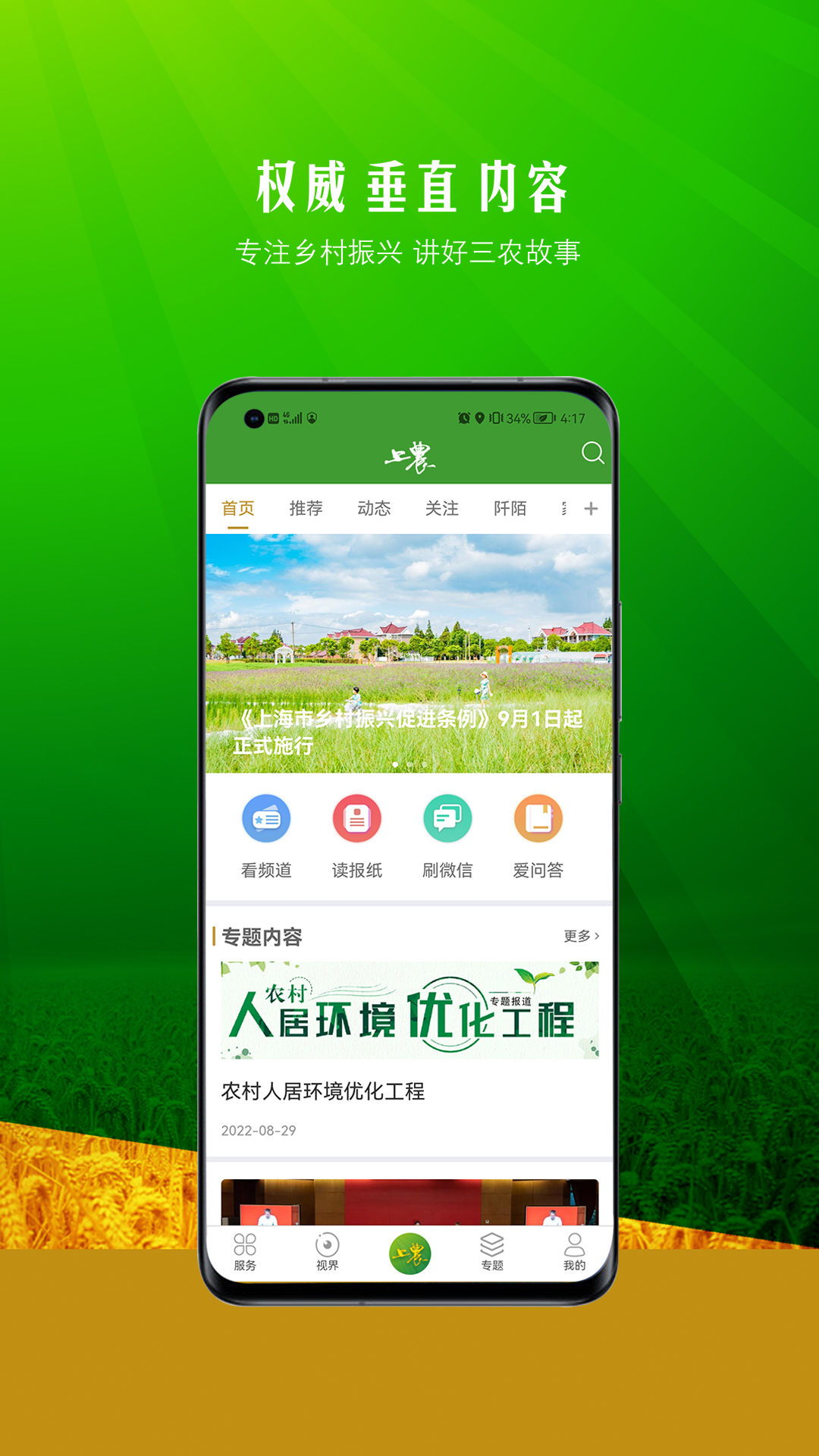 上农是由东方城乡报社出品的一个平台,它是经上海市委农办、市农委指定的信息发布载体,集新闻资讯、服务功能以及人文感知于一体。