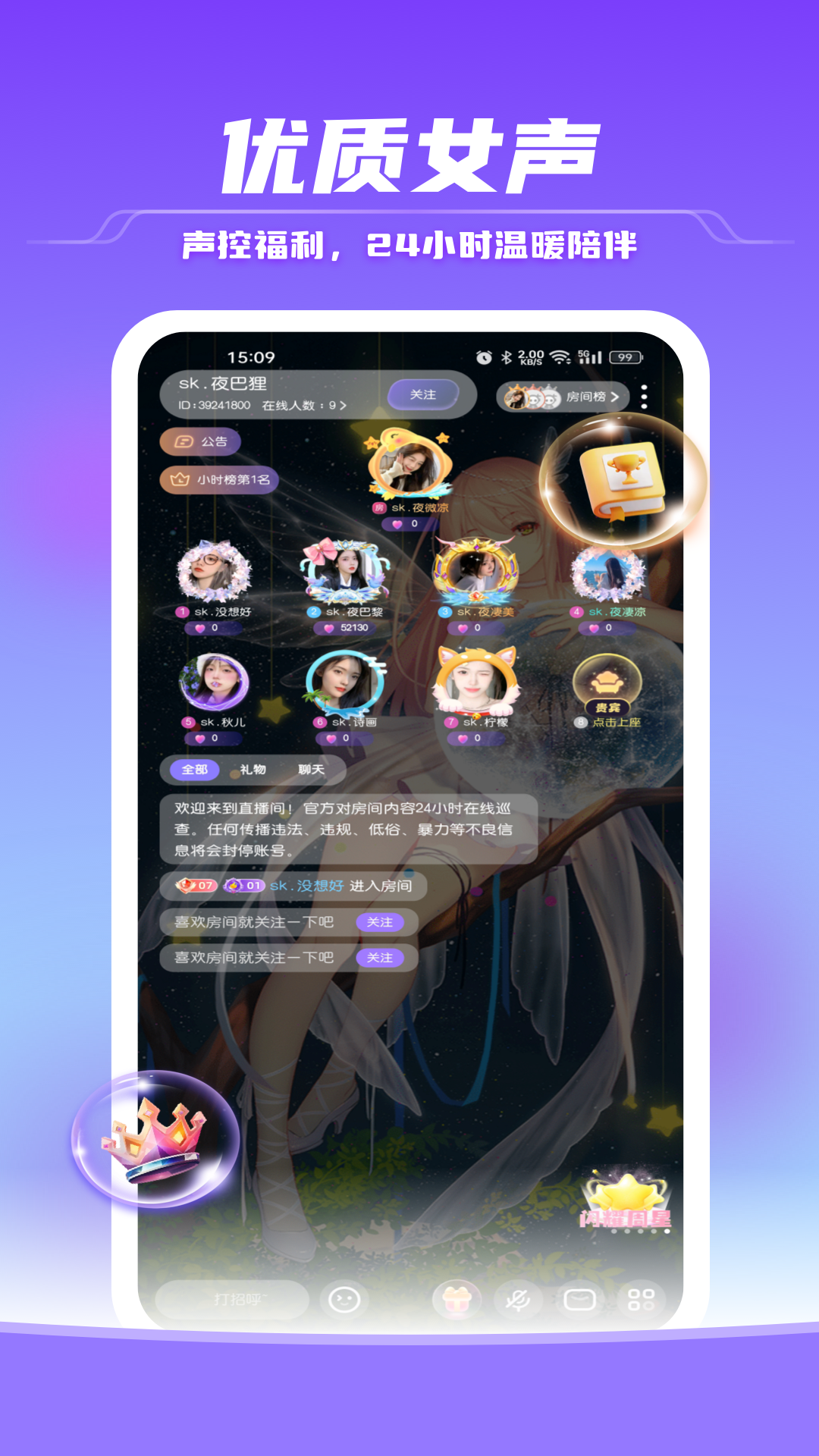 夜巴狸是一款在线实时语聊的软件,可以选择不同内容的房间进行匹配,语音交友,轻松恋爱、广场互动,一起来分享生活吧。