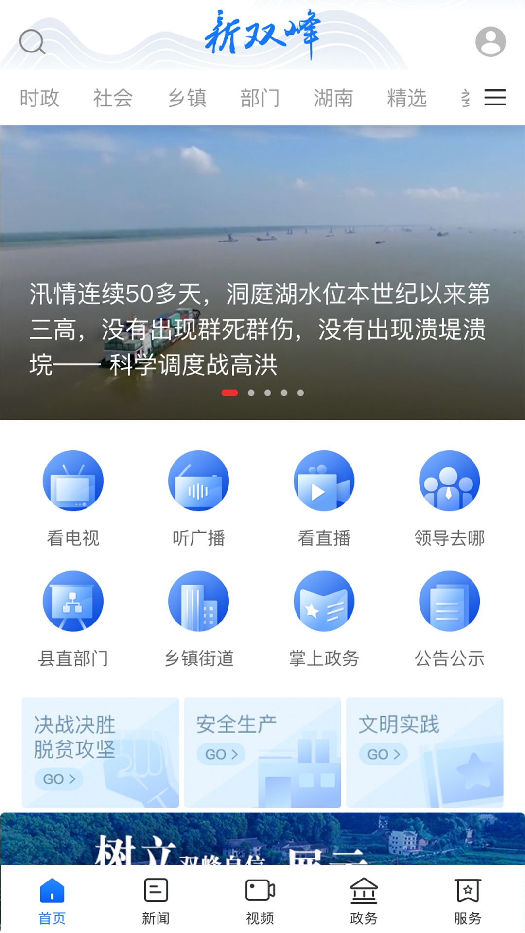 “新双峰”客户端是由双峰县融媒体中心依托“新湖南云”省级技术平台,倾力打造的综合性新闻客户端,集新闻舆论引导、政务服务和生活服务等多功能于一体,包括新闻、视听、政务、服务、资讯五大板块,涵盖本地新闻、国内外资讯、党建、文化、旅游、电视、广播、直播、文明实践、便民服务、在线问政等内容,是宣传展示双峰的全新平台。“新双峰”综合应用文字、图片、视频、H5等多媒体手段,打造全新融媒体产品,着力讲好双峰故事,传播双峰好声音。