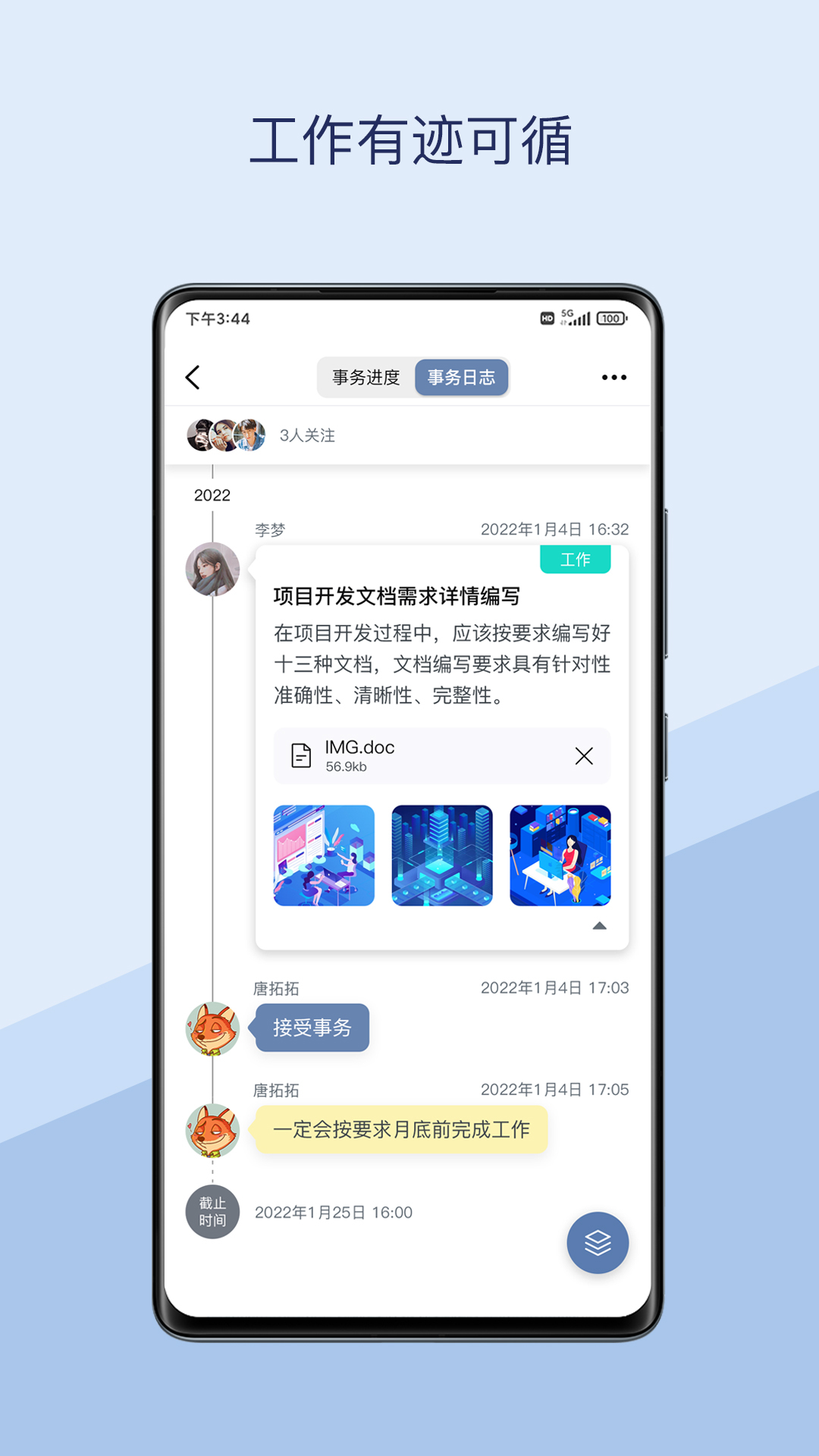 快叮,一款优秀的事务管理APP软件。在团队事务管理方面,它有着独特的优势。从团队的上层到基层,自上而下,当每个成员在各自负责的环节完成任务之后,事务的发起人就能全面知晓整个事务的所有进展情况。另外,该软件具备事务截止时间设定功能,这个功能能够对事务中的关键人员起到提醒作用,促使他们积极向前推进事务,从而确保事务顺利完成。
