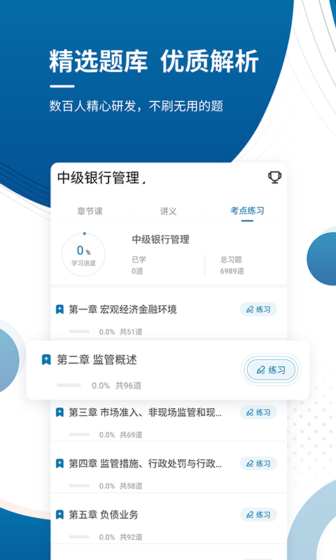 2024年银行从业资格考试力荐题库!银行从业资格学员考证都在用的备考APP,马上下载去体验!专为银行从业资格考试学员精心准备的考试配套题库,内容涵盖:精选题库、强师讲解、章节精讲、高频考点、高频易错、历年真题、冲刺密卷等多个模块,随时随地学习、省时省力备考。
