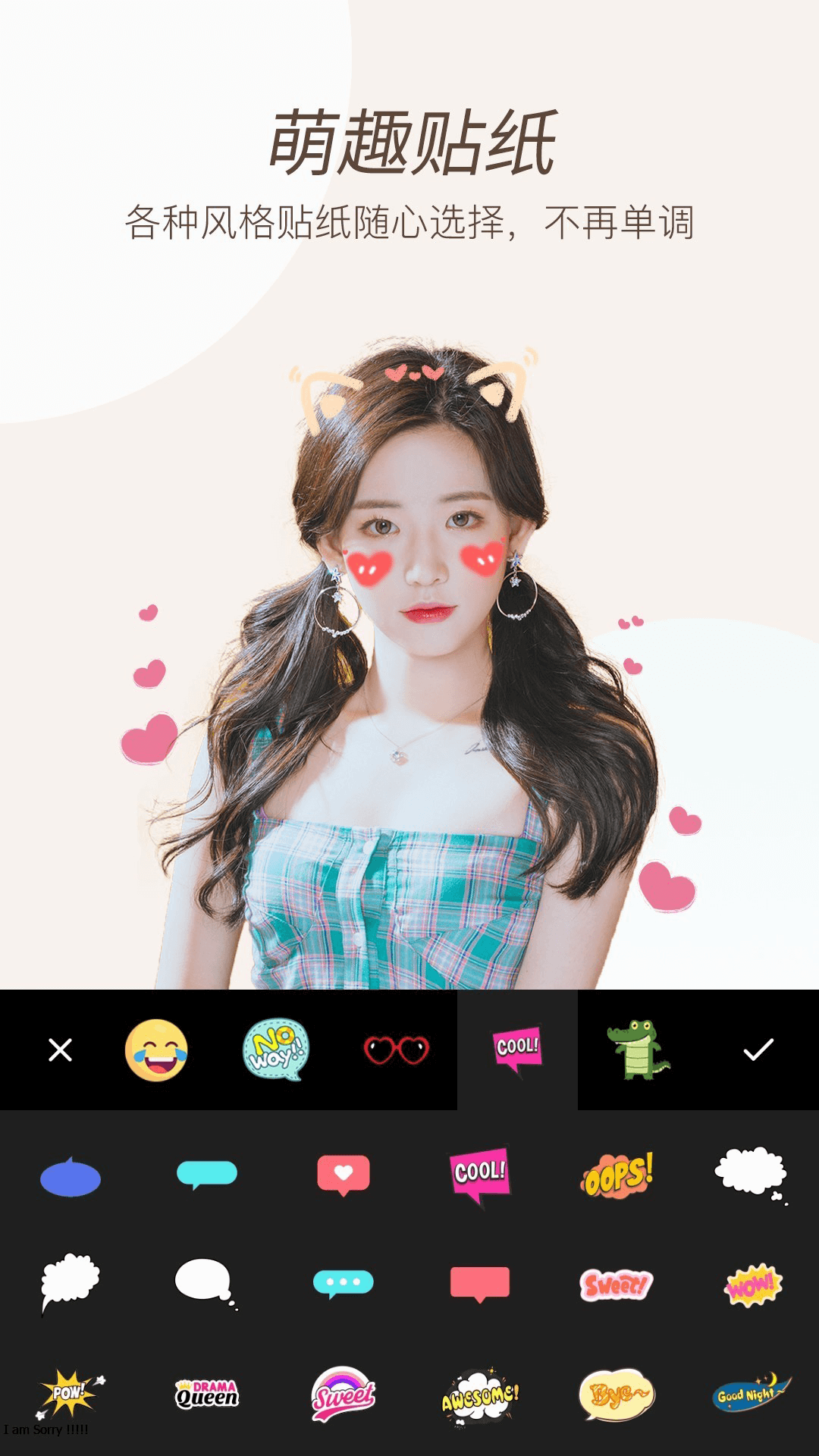 - 免费提供人气贴纸、卡通面具、滤镜美化特效、光照,边框