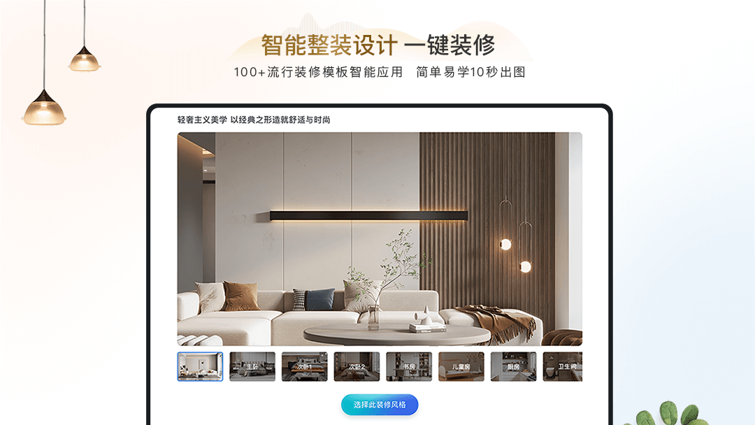 流行模板:具备上百套流行的整装模板,用户只需一键导入,即使是设计小白也能够制作出漂亮的效果图。