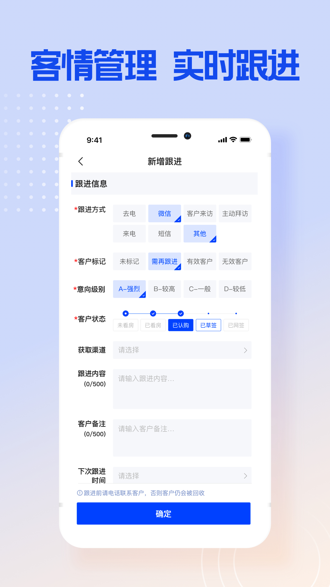 博点智慧跟客(跟客宝)作为一款移动端管理工具,它的功能十分强大。一方面,它可以成为置业顾问的得力助手,极大地提高工作效率;另一方面,它能够针对案场流程在数据层、管理层以及转化层开展智能分析工作。从客户积累阶段开始,一直到最后的售卖环节,跟客宝可实现全流程的客户跟进,从而帮助房地产企业更加精细、深入地挖掘用户需求。