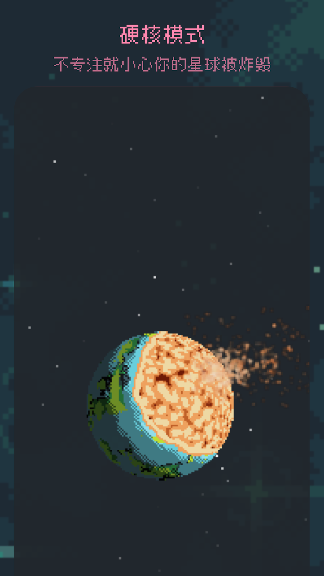 想加大放弃专注的筹码?你可以开启“硬核模式”,专注失败可能导致你的星球被炸毁哦!