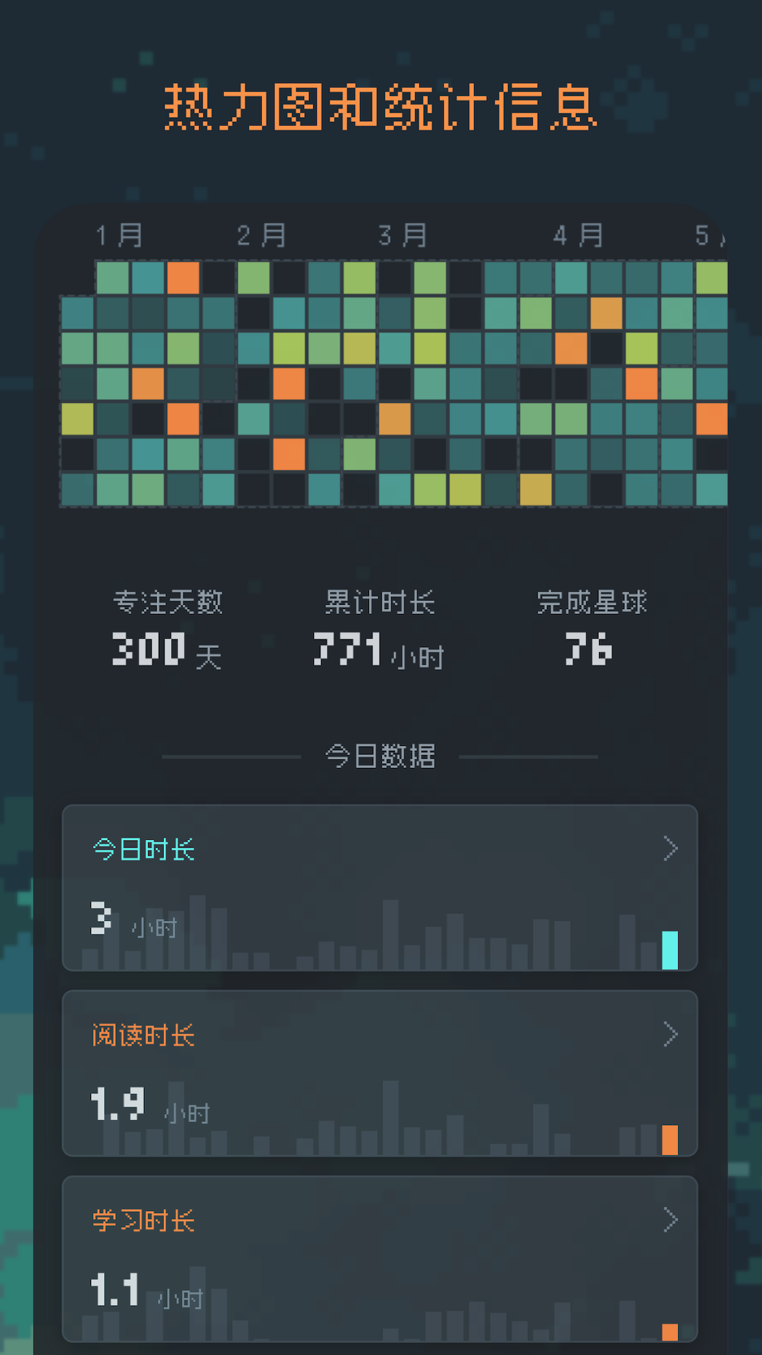 短期激励:每次专注后,星球的地貌都会改变,并向你讲述此间的星球故事;