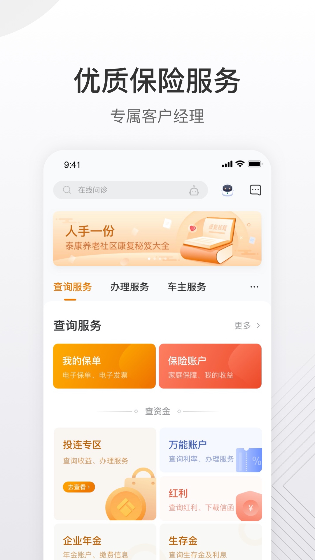 泰生活App是泰康保险集团股份有限公司面向外界打造的统一用户服务平台。该App汇聚了保险、生活、健康、商城等多个板块,立志为用户构建一个融合保险、资产管理、医养服务的综合性生活平台。