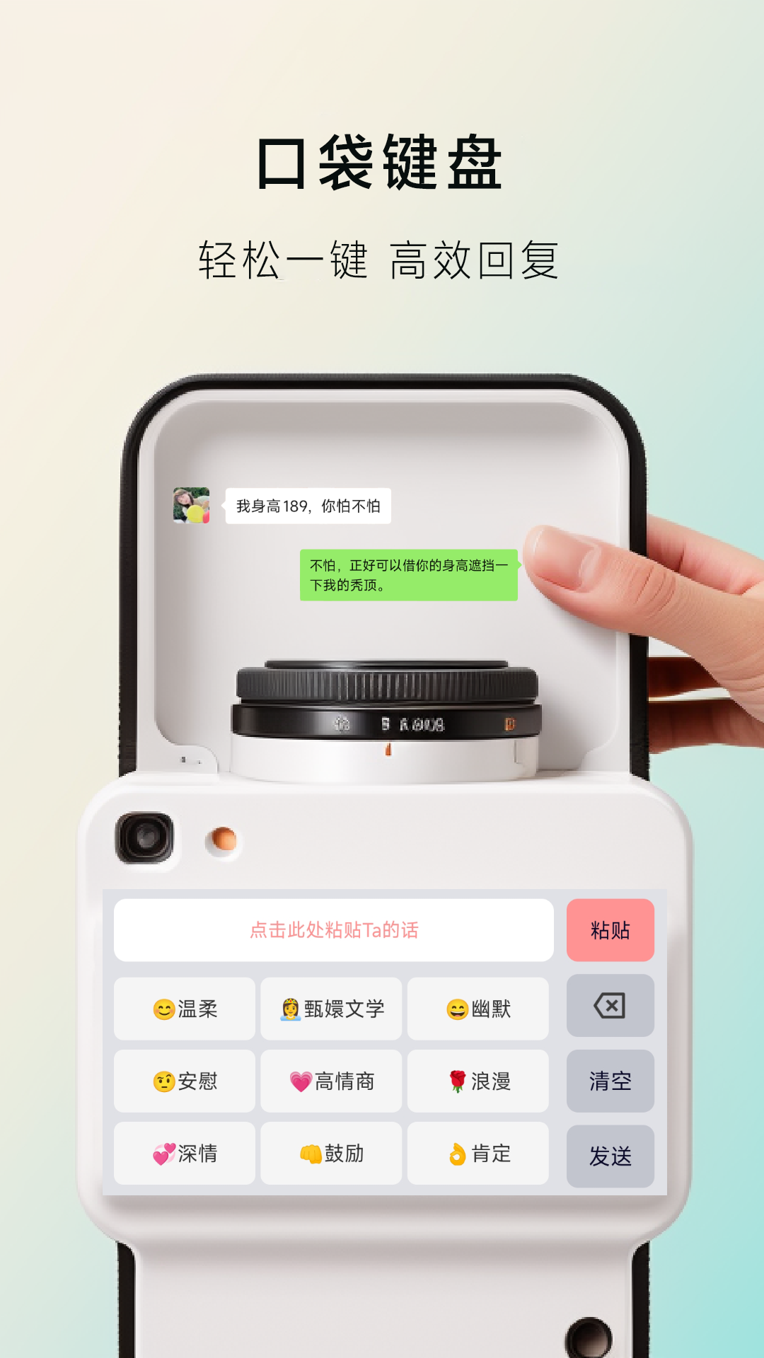【口袋键盘】只需轻松一键,就能实现高效回复,让您在聊天时更加从容。