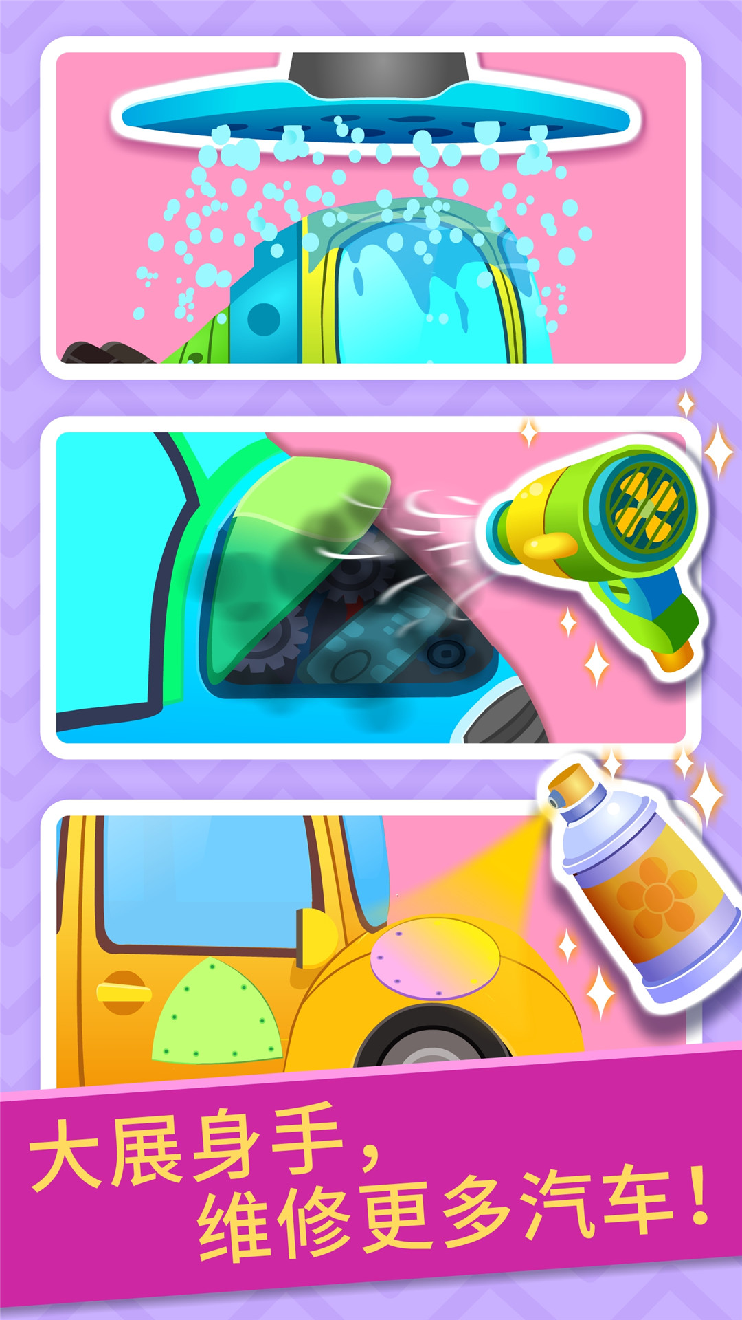 欢迎来到【宝宝修车店】!在这里,宝宝摇身一变成为汽车修理师,专门处理汽车出现的各种故障哦。