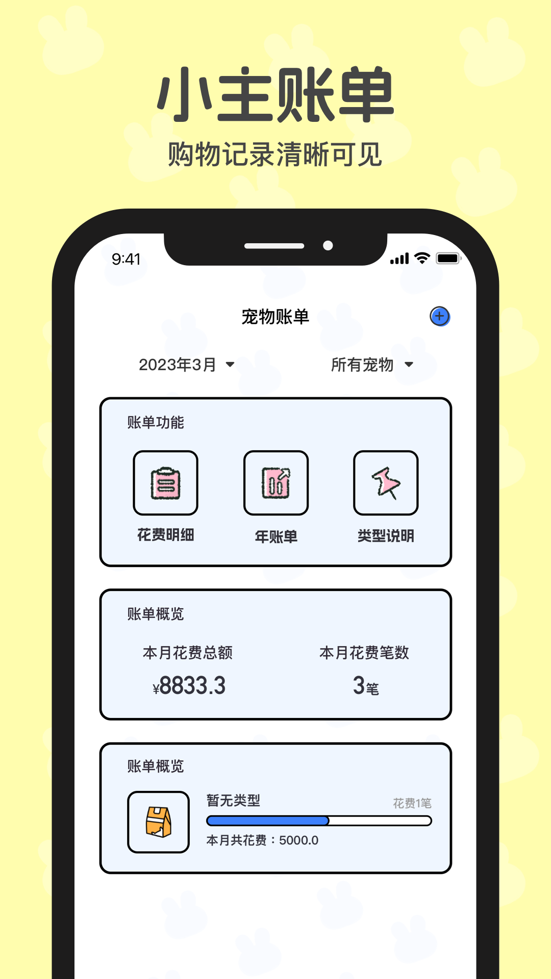 【宠物花销录】宠物的每一分花销都是你对它满满的爱,吃喝玩乐,记录你给它的所有;