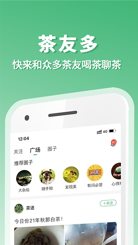 【茶友圈】有大神帮选茶、产品讨论、新手答疑等多个圈子,用户可在此看茶、聊茶、交流茶文化,也能创建圈子与小伙伴共享。