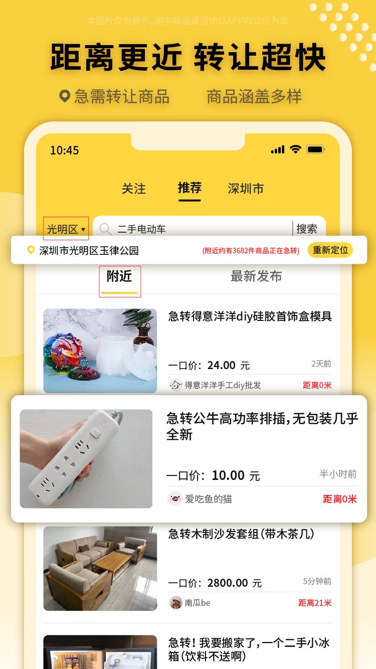 4. 方便快捷的交易体验:平台上发布的转让商品大多来自附近社区的用户。对于那些比较着急转让或购买的用户来说,能够马上查看商品,迅速完成转让交易。