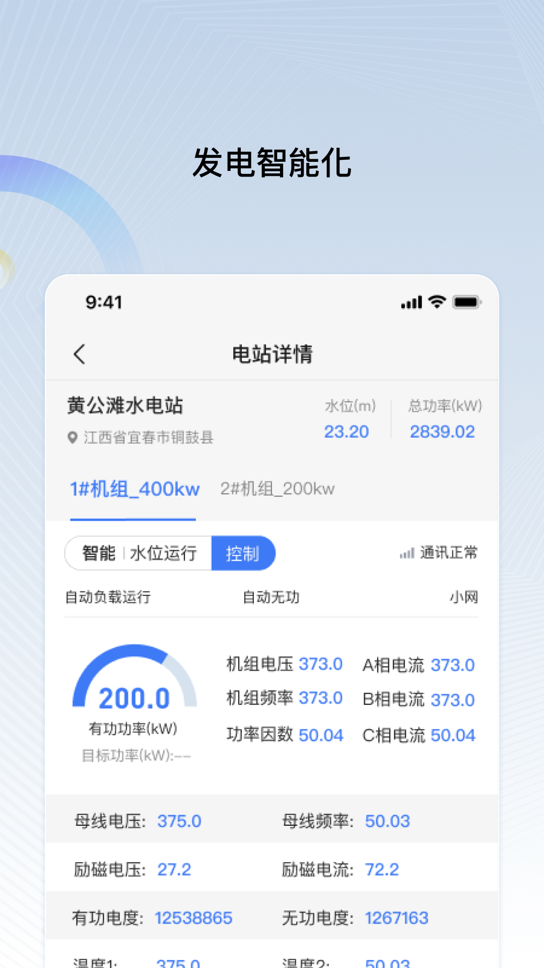 可以通过app实现水电站的远程监测,远程开关机,机组消息查询,发电量查询,报警信息推送,生态流量下泄监测等。