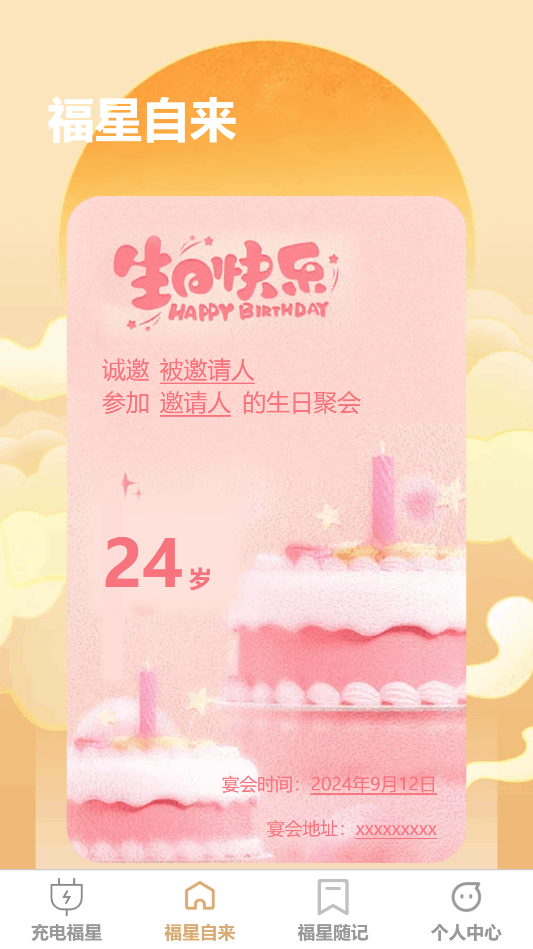 【福星自来】这个功能为用户准备了特别定制的福星生日贺卡。这是充能福星送上的一份温馨惊喜。不管是您自己的生日,还是亲朋好友的重要日子,只要进行简单的设置,制作精美的福星贺卡就会按时出现。贺卡中满载着满满的祝福与温情,这种爱与关怀能够跨越时间和空间的限制,去温暖每一个值得纪念的时刻。