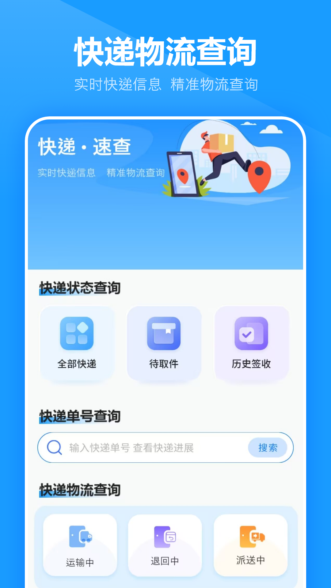这是一款快递速查软件,支持京东,顺丰,韵达,圆通等多种快递公司数据查看,随时进行物流信息查询,不论您想查看待取件还是历史签收的快递信息,全都一目了然。