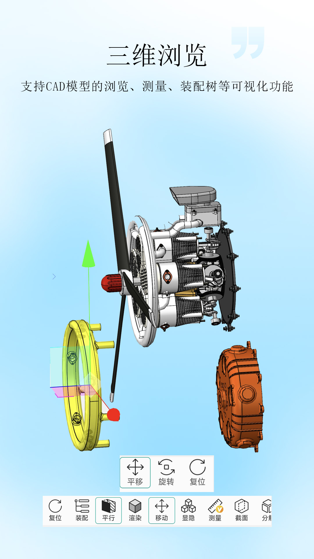 - 还支持三维图纸在线浏览、测量、分解等可视化功能。