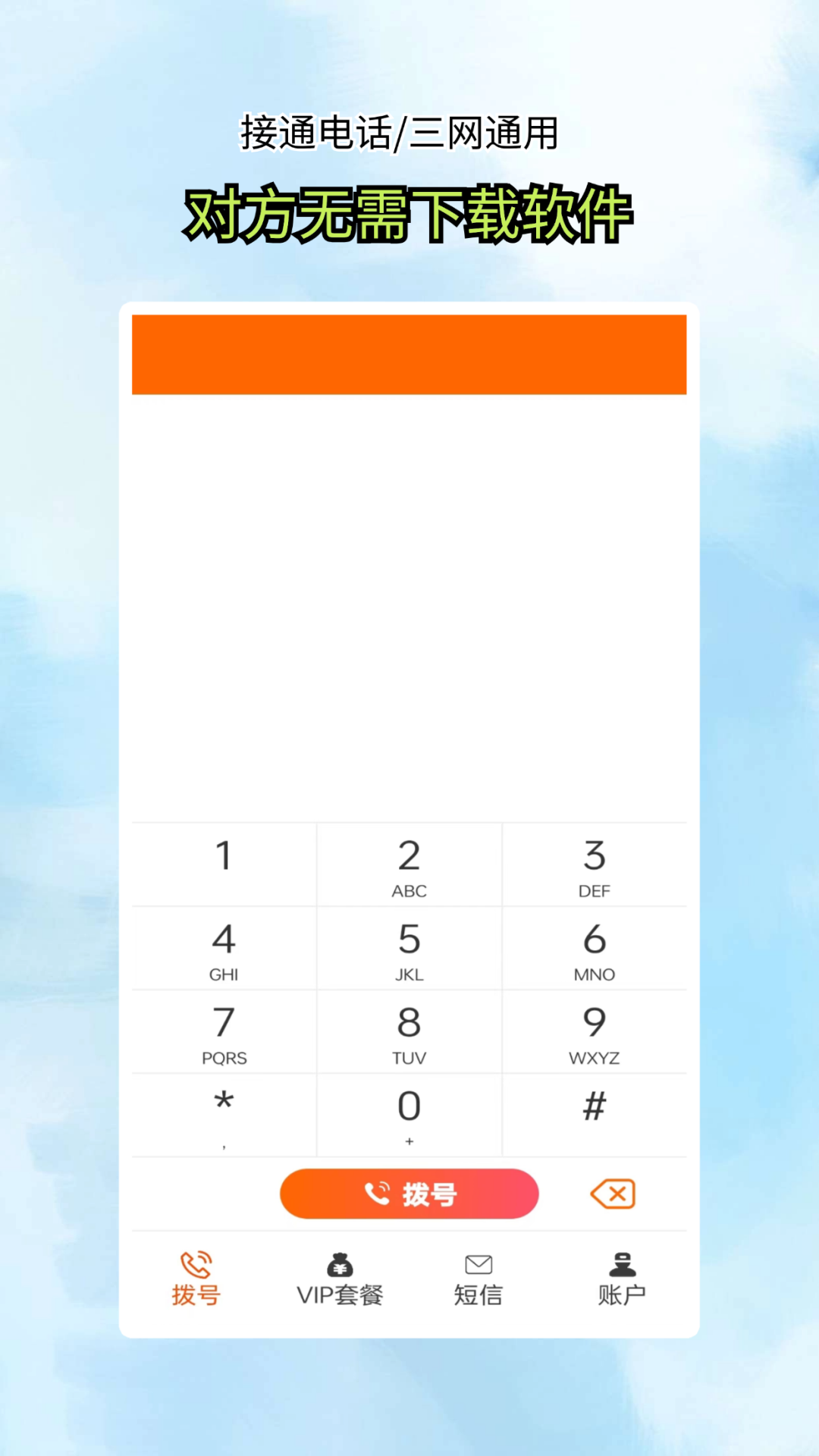 它采用优质的VOIP网络电话线路,让您享受清晰的语音通话,不会出现杂音和延迟现象。即使您处于像12306订票时的嘈杂环境或者在飞机上这样特殊的场景下,一旦接通电话,依然能体验到高清语音通话。