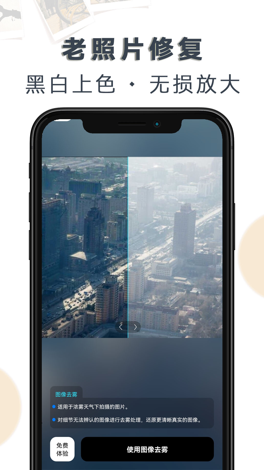 此外,它还具备拉伸恢复、照片水印修复、色彩增强渲染、对比度增强、图片去雾等实用功能,有了它,再也不用为图片的PS处理烦恼啦!